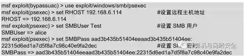 (6)使用SMB psexec模块,并设置需要的配置选项参数。执行命令如下所示: