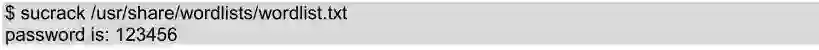 物理访问攻击与提升用户的权限类似。即当一个普通用户登录到系统中,破解本地其他用户账户的密码。在Linux中,普通用户可以通过su命令代替其他用户执行某些操作,意味着该用户能够在Linux/Unix系统中提升自己的权限。在这种情况下,可以使用SUCrack工具暴力破解使用su的本地用户账户的密码,来完成后续的渗透攻击操作。下面介绍使用SUCrack工具攻击该用户。