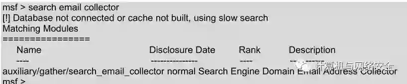 执行以上命令后,在输出结果中看到以上信息,就表示存在 search_email_collector模块。