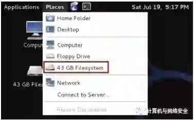 (3)在该界面打开 Windows 文件系统。在 Kali Linux 桌面依次选择 Places—43GB Filesystem选项,将打开如图9所示的界面。这里的43G表示当前Windows系统的磁盘大小。