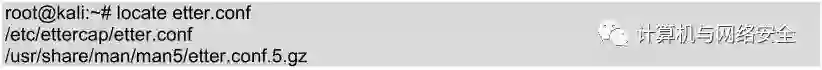 (1)配置Ettercap的配置文件etter.conf。首先使用locate命令查找到Ettercap配置文件保存的位置。执行命令如下所示: