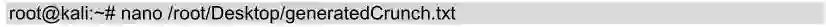 执行以上命令后,将会打开generatedCrunch.txt文件。该文件中保存了使用crunch命令生成的所有密码。