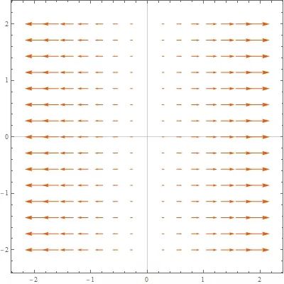 再看下面的向量图, 只有向量的水平分量, 也即是说这个向量场总是水平的, 并且向量的长度取决于 x .