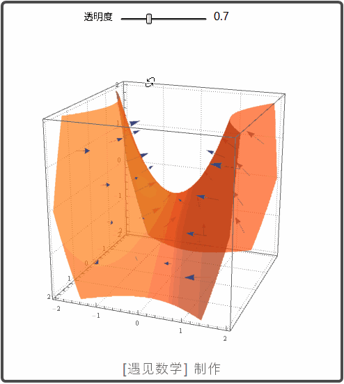 如下面绘制马鞍曲面上梯度构成的向量场图.