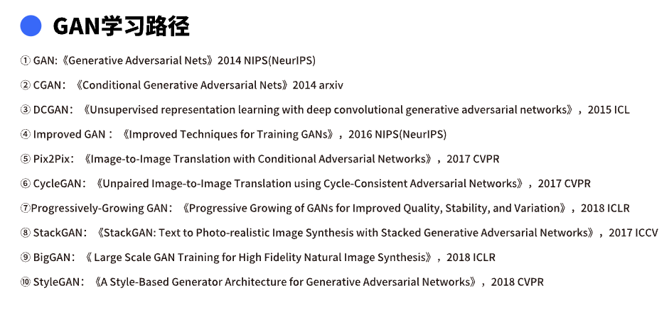 深度之眼好评度超高李老师 结合自己工作及学习经验,并配合深度之眼教研团的打磨,总结出一条GAN基石论文的学习路径: