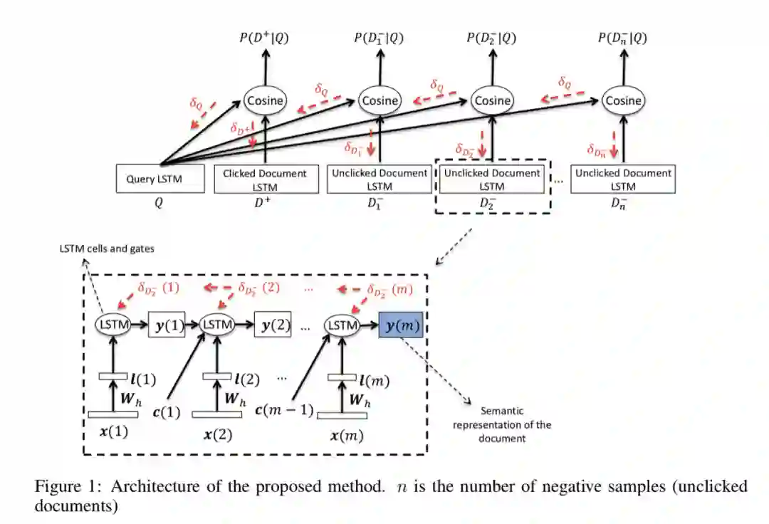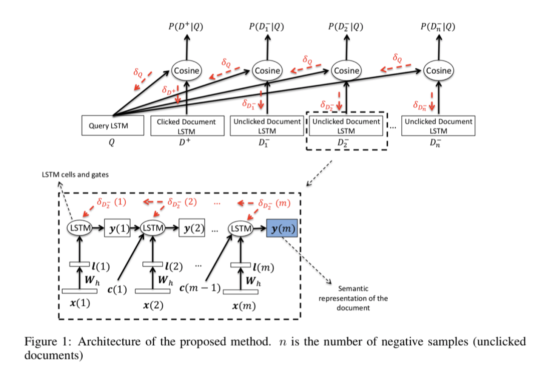 针对 CDSSM 无法捕获较远距离上下文特征的缺点,有人提出了用LSTM-DSSM(Long-Short-Term Memory)来解决该问题。原文传送门 https://arxiv.org/pdf/1412.6629.pdf。这篇文章是对DSSM模型的修改,相比于CDSSM更简单,毕竟全连接网络是最简单的神经网络,替换一下模型就能提升效果。