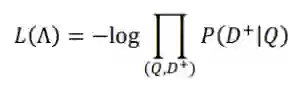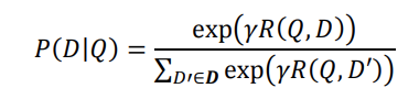 通过 softmax 函数可以把 Query 与正样本 Doc 的语义相似性转化为一个后验概率: