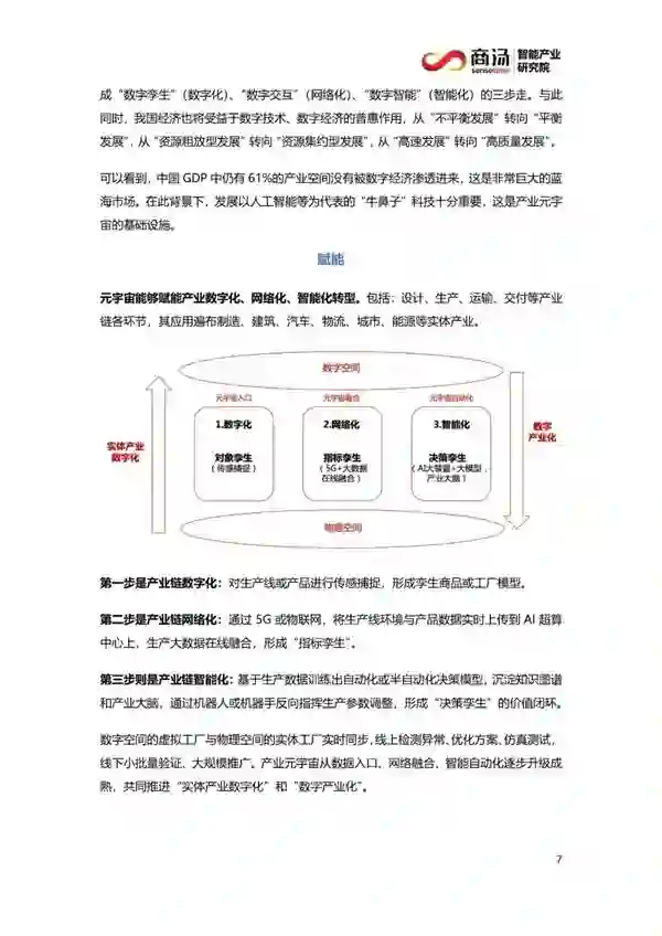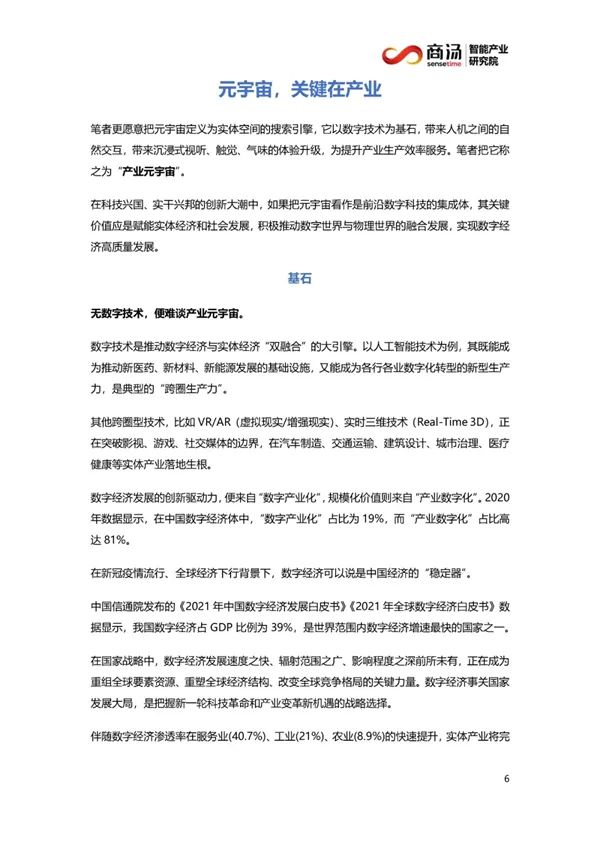 当前,中国GDP中仍有61%的产业空间没有被数字经济渗透进来,这是非常巨大的蓝海市场。在此背景下,发展以人工智能等为代表的“牛鼻子”科技十分重要,这是产业元宇宙的基础设施。