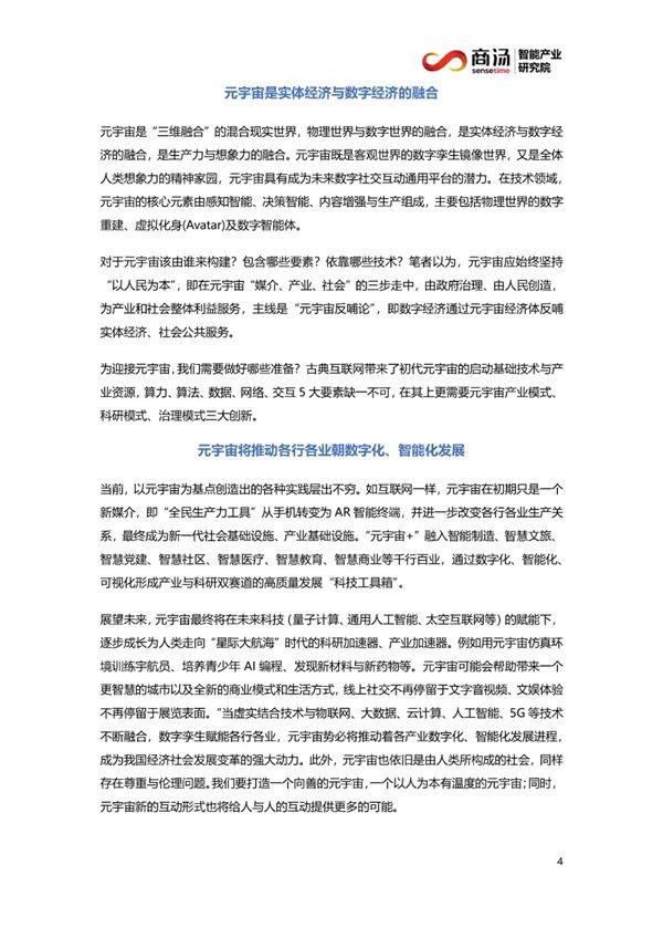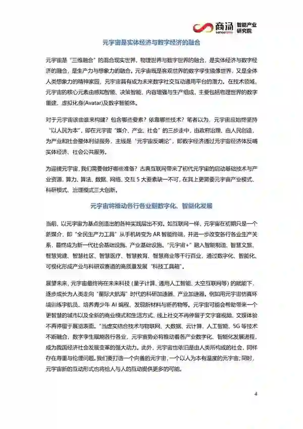 白皮书将元宇宙定义为实体空间的搜索引擎,它以数字技术为基石,带来人机之间的自然交互,带来沉浸式视听、触觉、气味的体验升级,为提升产业生产效率服务。白皮书将其称之为“产业元宇宙”。