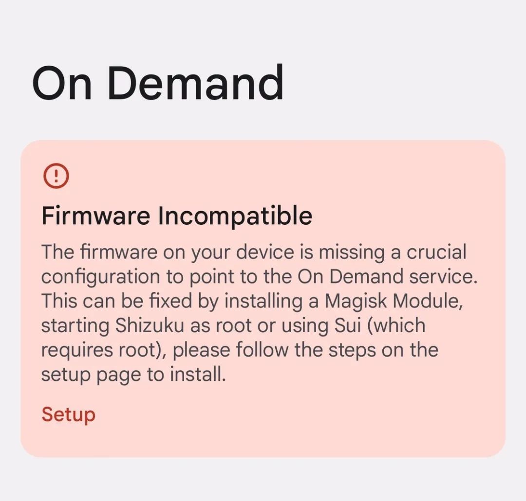 :这一功能可以理解为「按需在线识别」,即当「闻曲知音」无法在离线曲库中匹配到任何歌曲时,允许音频上传至 Google 进行在线识别。显而易见,这项功能需要某些特殊的 Google 组件,然而遗憾的是,绝大多数国行手机都没有内置完整的 Google 套件,其中就包括这一功能所需的「Music Recognition Service」,并且该组件要求系统内建才能够正常运行。解决方法之一就是通过 Magisk 刷入对应模组,或是干脆给手机刷入一个国际版 ROM,具体操作方法可以查看应用内提示或
