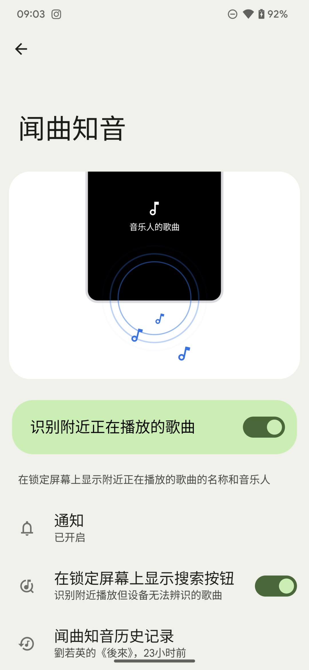 是 Pixel 手机搭载的一项听歌识曲功能,它能够让 Pixel 手机自动识别周围正在播放的歌曲而无需用户手动触发,并且更值得我们关注的是,这整个过程都是在本地离线完成,这是「闻曲知音」与一般听歌识曲类 App 最本质的两点区别。