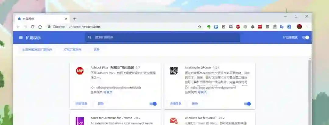 在以往的版本中,我们可以先下载 .crx 文件并解压缩到本地(可以使用 7zip 等工具解压缩),打开 Chrome 浏览器的「扩展程序」管理页面(chrome://extensions/)、勾选右上角的「开发者模式」,之后点击「加载已解压缩的扩展程序」进行手动安装。