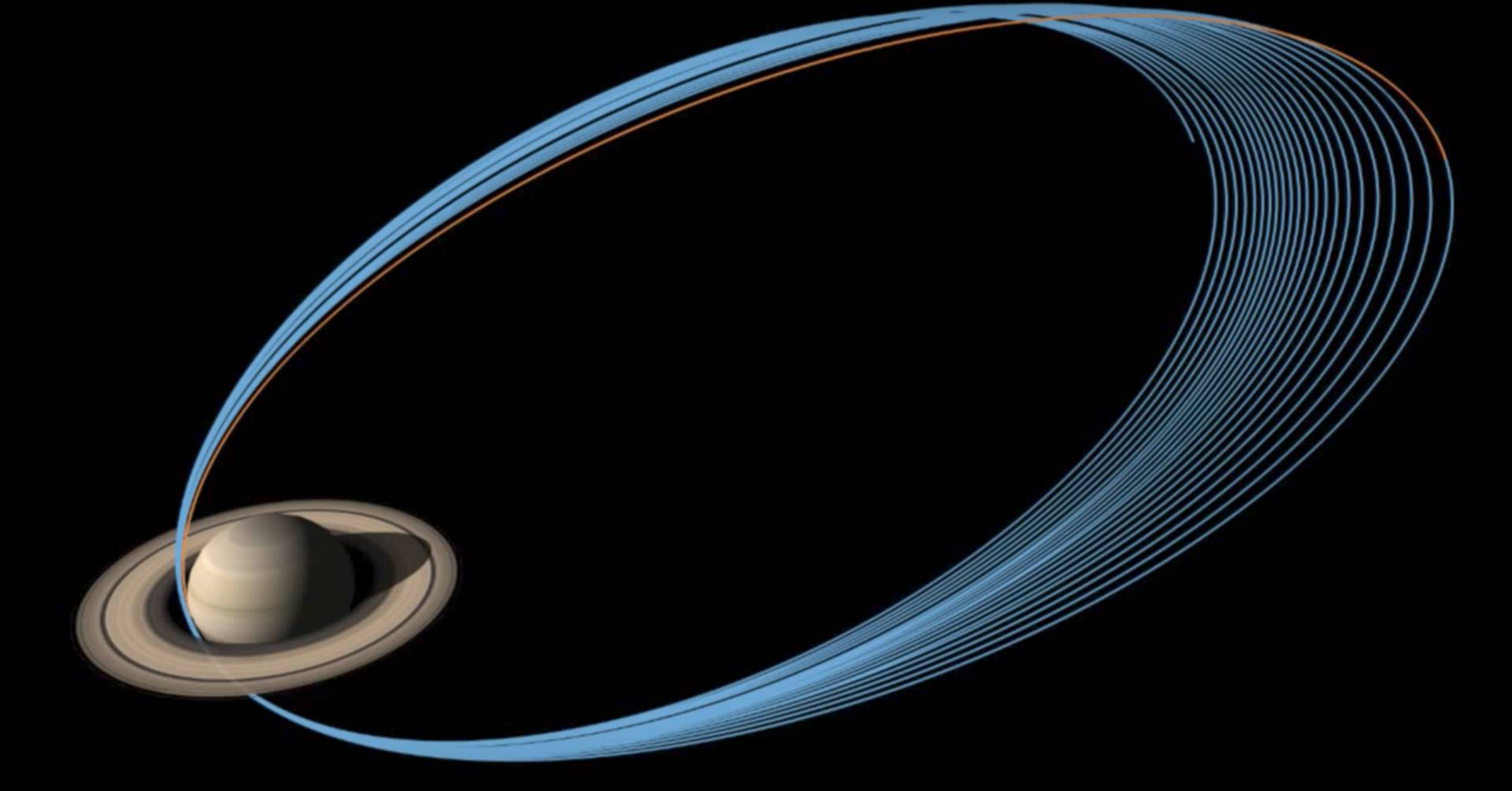 有些地方你只能去一次。在土星环和大气之间不太深也不太远的位置上,卡西尼号将沿这22个轨道进行最后的飞行。