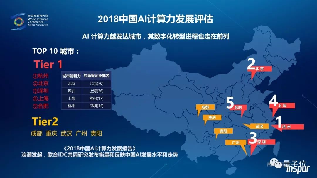 具体到AI计算力方面,今年9月,浪潮与IDC联合发布了《2018中国AI计算力发展报告》摘要版,其中对中国AI计算力城市发展水平作出了综合评估,AI计算力排名TOP5的城市分别是:杭州、北京、深圳、上海、合肥。另有数据显示,杭州、北京、深圳、上海,在城市创新力、独角兽企业量等方面也同样领先。由此可以看出,AI计算力发达的区域和城市,其数字化转型进程也走在前列,数字化转型要从计算力基础设施建设开始。