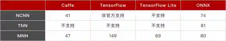 通用性上MNN的优势也不容置喙,MNN在通用性上下了很大的功夫,你看支持的算子数目就可以知道这算是MNN的一个工作重点。