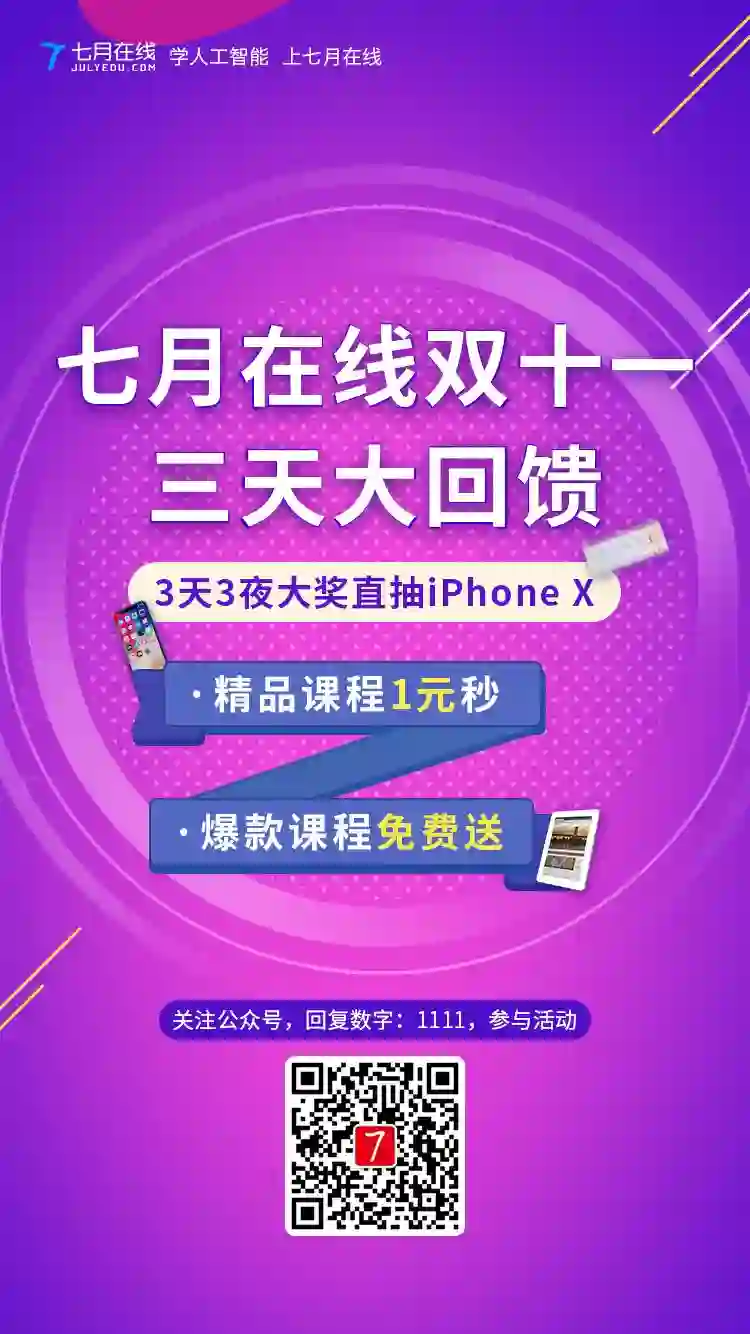 ps:关注服务号:七月在线,回复数字:1111,邀请好友增加抽奖机会喔~