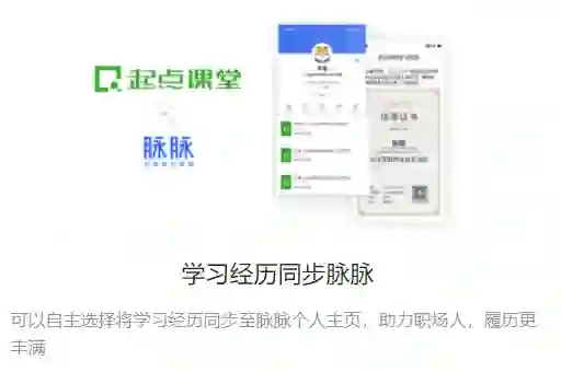 学后有起点课堂颁发的结课证书,可以上传到脉脉个人主页,助力职场人,履历更丰满。
