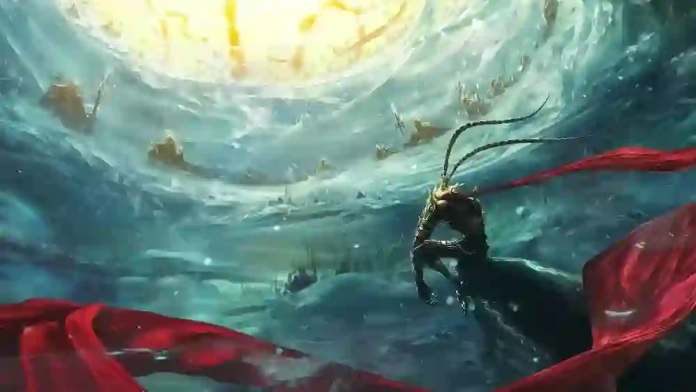 在最后的一些大特效上,内部团队不得不舍弃了一些自己引以为傲的开创性细节:比如敖丙将几路水流汇集在陈塘关之上,失重的水体应该是怎样的一种形态?饺子团队最开始设计了四处拍打的乱流,进而产生了非常多的漩涡。饺子拿着概念图感叹,这个漩涡设计会成为这部动画的一大神技。但特效难度实在太大无法实现,机器的运算力也带不动,为了节省预算只好忍痛放弃。