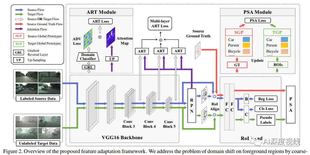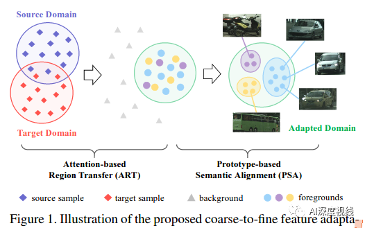 提出了两个自适应模块,基于注意的区域转移(ART)和基于原型的语义对齐(PSA)方法,利用类别信息学习前景区域的领域知识。
