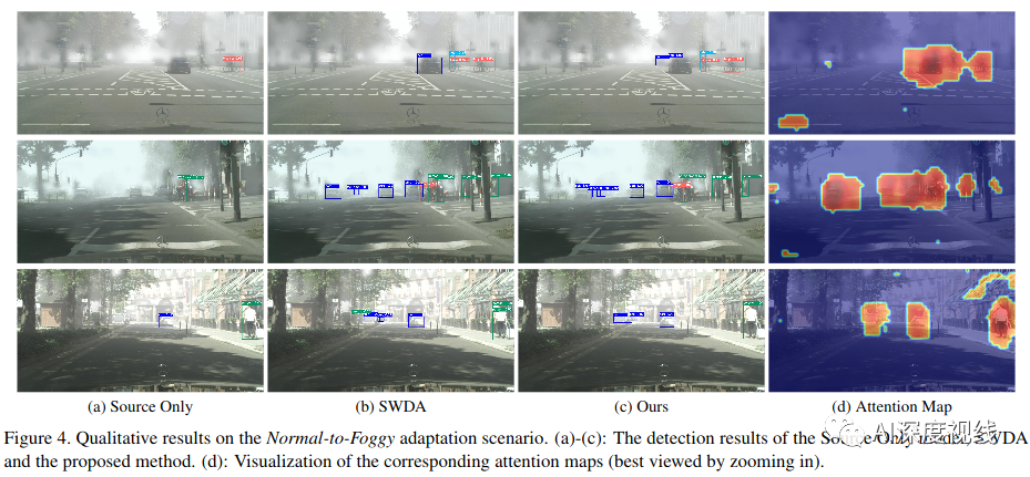 利用高级特征中的注意机制提取感兴趣的前景目标,并在特征分布对齐时对其进行标记。通过多层对抗性学习,利用复杂的检测模型可以实现有效的领域交叉。