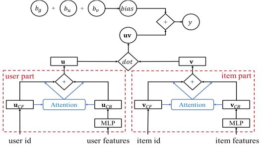 NCMF:参考 NUS 何向南老师之前的工作,用 NFM 做用户和回答的特征提取,再把提取后的特征应用到 NCF 模型的框架中。
