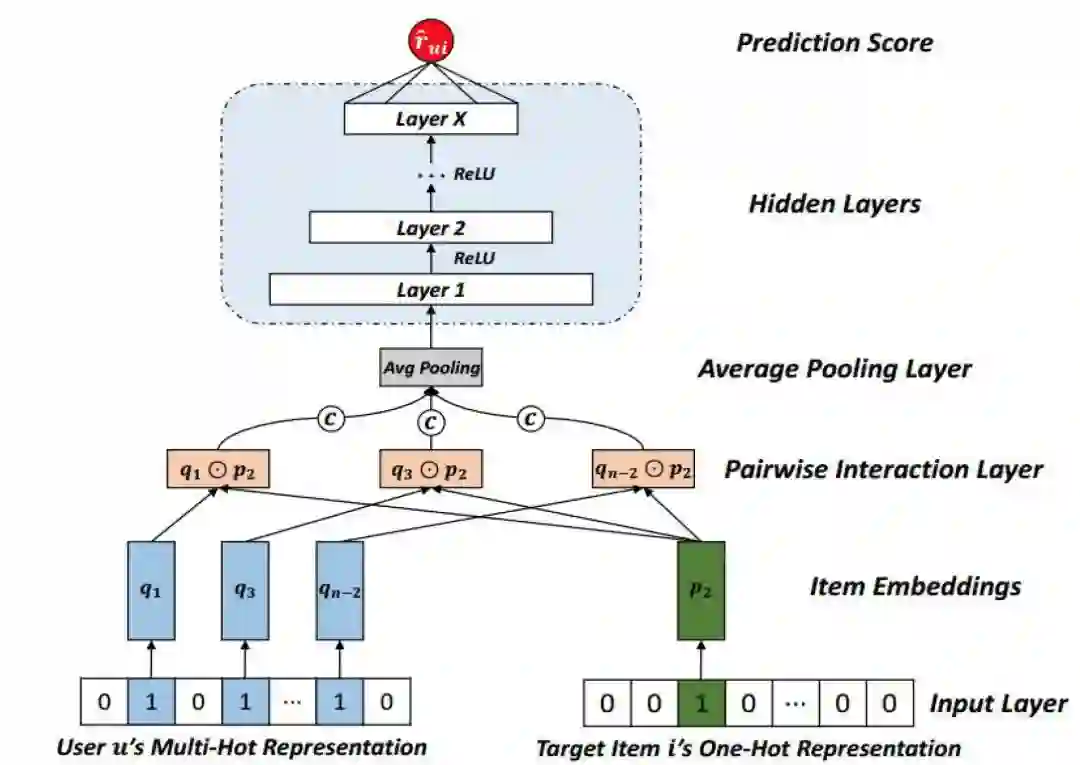 合肥工业大学多媒体与推荐系统实验室提出的 DeepFISM 方法将协同过滤与 Deep Learning 进行了有效的结合。FISM 方法是 2013 年由 Santosh Kabbur 等人提出的 Item Based 的协同过滤方法,用于从用户的浏览和评分历史中捕捉用户偏好,生成对用户的 top-N 推荐结果。