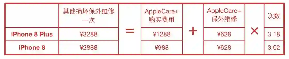 对于其他任何保外维修费用,进行一次其他损坏保外维修费用,可以抵过购买 AppleCare+ 再进行 三次 其他损坏保外维修的费用,当然 Apple 限制了 AppleCare+ 用户只能进行两次优惠版的其他损坏保外维修,第三次及之后就需要支付原价了。