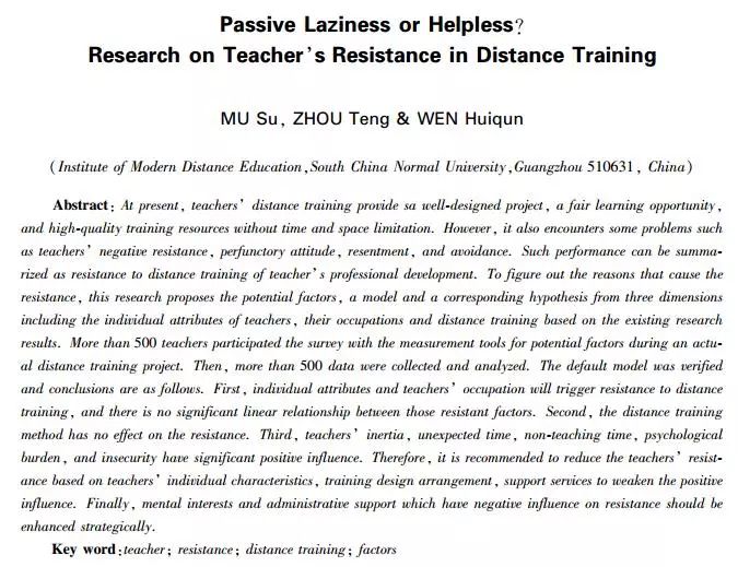 关键词:教师;阻抗;远程培训;产生因素