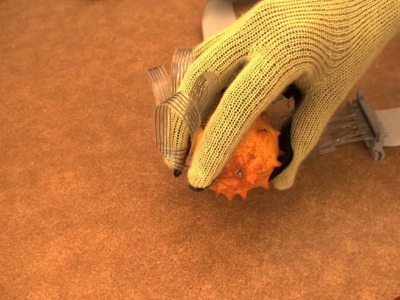 触觉手套抓起一个刺角瓜的交互