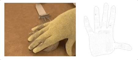 这个神奇手套名为“可伸缩触觉手套”(scalable tactile glove,STAG),使用柔性材料,在几乎整只手上布置了550个微型传感器。