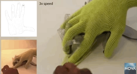 Sundaram和同事戴着这只手套,在3~5分钟的单手操作26件日常物品(包括汽水罐、剪刀、网球、勺子、钢笔、水杯等)的过程中,记录了几段压力图的视频。