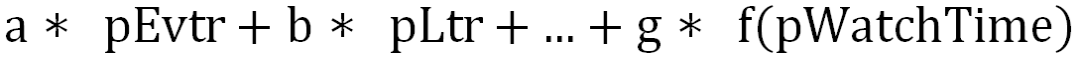 约束项包括各种互动,比如播放、点赞、关注等。约束项使用非线性约束:阈值内做线性的弱衰减,可以用一些约束轻微的去兑换时长;超出阈值的做指数强衰减,避免约束项过分被损害。