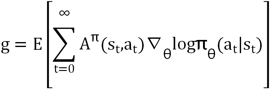 选用策略梯度法解决该强化学习问题:对策略取log后求梯度,再用Advantage函数加权求和: