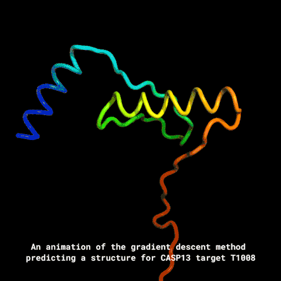 如果你以为这就是AlphaFold能做的全部事情,那可就大错特错了。事实上,DeepMind的研究人员在这些评分函数的基础上,还使用了两种全新的方式来优化蛋白质结构评分:他们使用了一个生成神经网络,不断生成新的蛋白质片段来反复替换一段旧的蛋白质结构,这样一来,蛋白质结构的评分就被不断提高了。另外,研究人员还使用了一种名为梯度下降的方式来让AlphaFold预测的结构变得高度精确。梯度下降是一种机器学习中常用的数学技术,用来实现渐进式的细微改进。研究人员将这项技术用于整个蛋白质链,而不是结构中组装前必须分开折叠的片段,降低了预测过程的复杂性