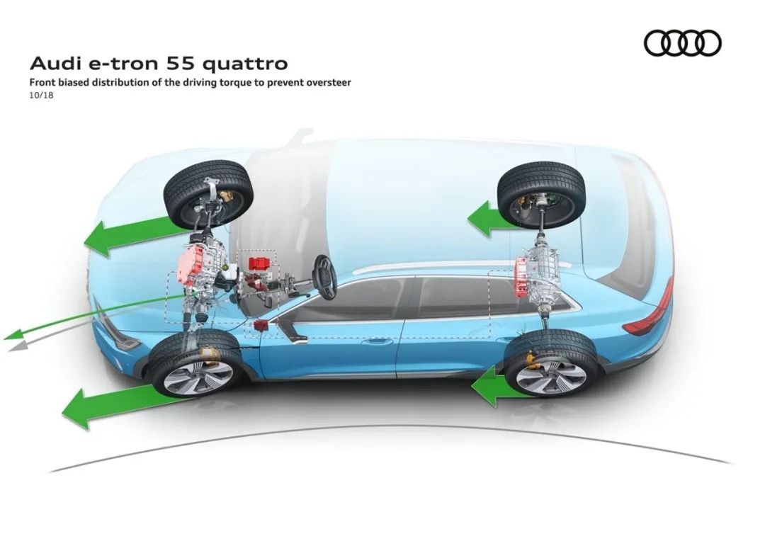 当然,在这样高效的纯电动动力系统背后不仅是「速度」的跃迁、研发调校能力的改变,奥迪 e-tron 还使用顶级差速系统等硬件来支持。更能侧面反应这家车企真正在意的能力,这种对于「驾控性」的追求应该是汽车企业的基础能力,即便它更像一种「内在的品质」,但它展现的是一家车企的「基本功」。