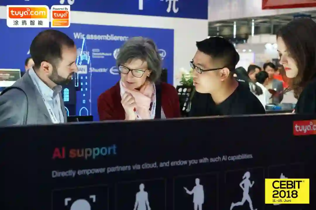 涂鸦智能首次参加CEBIT便引起大量关注,作为参展企业中唯一一家智能化平台,相比其他参展的制造商和品牌商,独特的平台赋能效应在参展企业中独树一帜,尽管涂鸦智能带来了大量智能大小家电参展,但是涂鸦智能并不生产智能产品,而是为合作伙伴提供人工智能和物联网解决方案,帮助他们完成产品智能化。