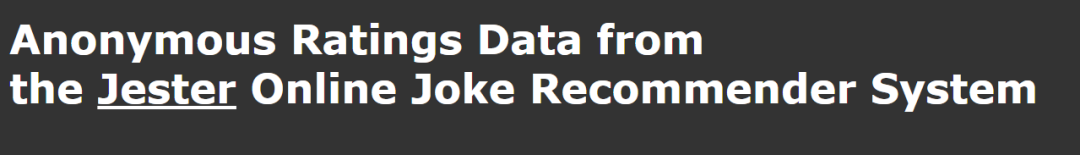 该数据集包含来自73,496个用户,关于100个笑话的410万连续rating数据(-10.00到+10.00)。