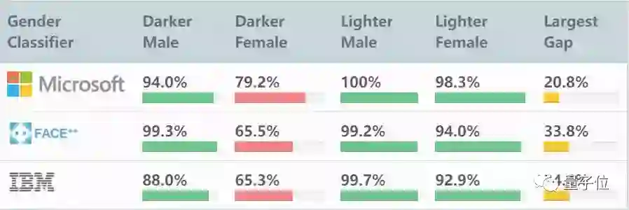 2018 年Joy Buolamwini和Timnit Gebru的研究首次揭示了商业人脸识别系统(包括 IBM 的)的缺陷:人脸识别针对黑人、女性的错误率高达 21%-35%,而针对白人、男性的错误率则低于 1%。