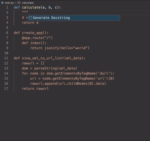 跟正常的DocStrings用法一样,你只需要输入三引号「“””」,之后按Enter,便能调用这个工具。就像这样: