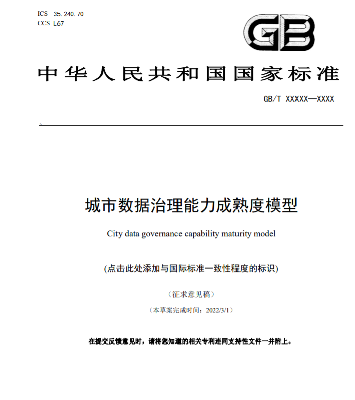《城市数据治理能力成熟度模型》国家标准,本文件给出了城市数据治理能力成熟度模型,从能力和过程两个角度给出了城市数据治理能力成熟度等级相关要求。本文件适用于城市数据治理需求方和城市数据治理服务运营者建立数据治理体系,也可用于对城市数据治理成熟度进行评估。