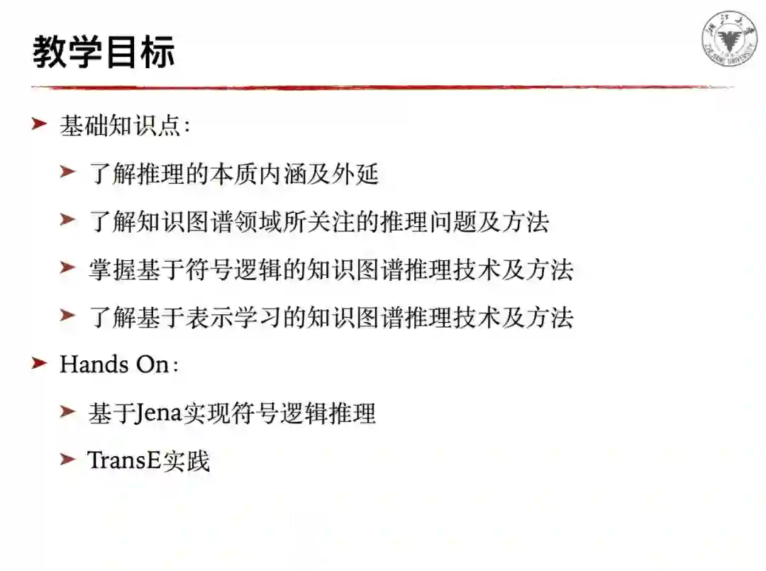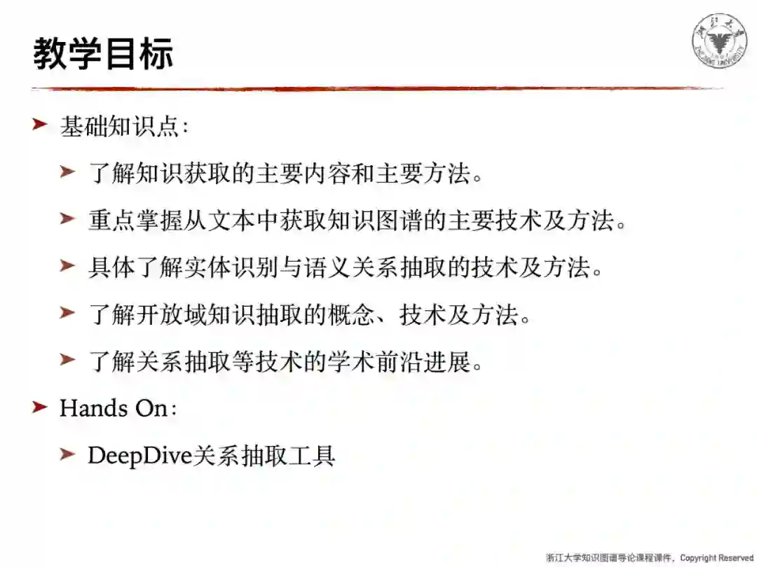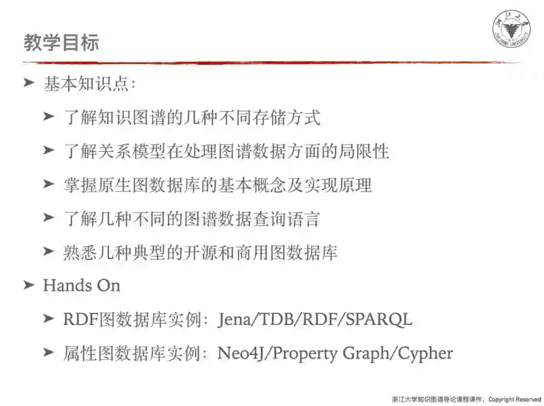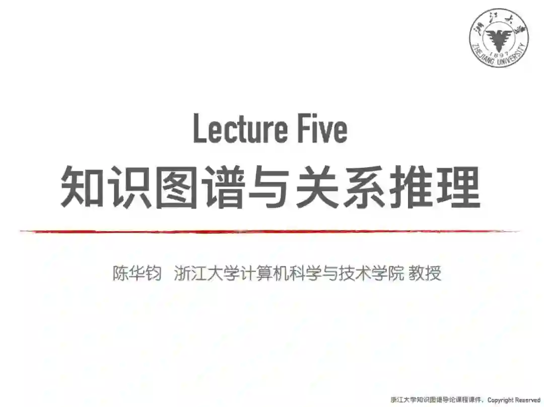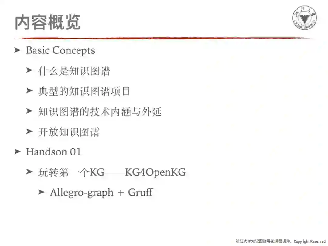 ➤ Lecture 1 : 知识图谱概览 ➤ Lecture 2:知识图谱的表⽰与建模 ➤ Lecture 3:知识图谱的存储与关联查询 ➤ Lecture 4:知识图谱构建与关系抽取 ➤ Lecture 5:知识图谱表⽰学习与关联推理 ➤ Lecture 6:语义搜索与知识图谱问答