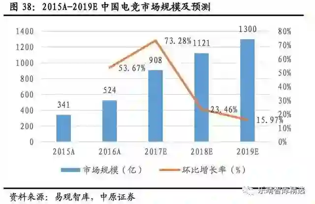 是目前体育行业中最具爆发力的产业之一。同时,电竞行业在未来3年还将保持高速增长,根据市场研究公司Newzoo的数据预测,总体而言,到2021年,电子竞技总观众人数预计将从今年的3.95亿增长到5.8亿。总收入将别达到16.50亿美元。