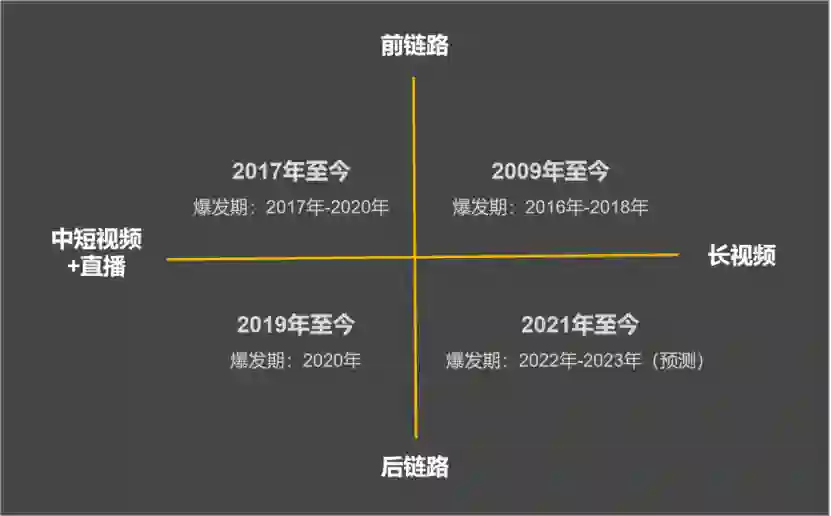 “视频+链路”两大生态系统间整合化反,成为了近几年内容营销的兴奋地带。长短视频、前后链路,构成了内容营销的“四大象限”。