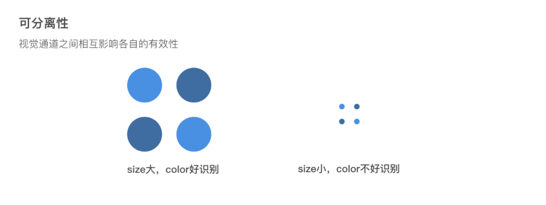 可分离性告诉我们不能无限制的使用多种视觉通道,每增加一种通道来映射数据,都需要考量对已有编码方式的影响,尤其是尺寸(size)特别影响其他视觉通道的效果。