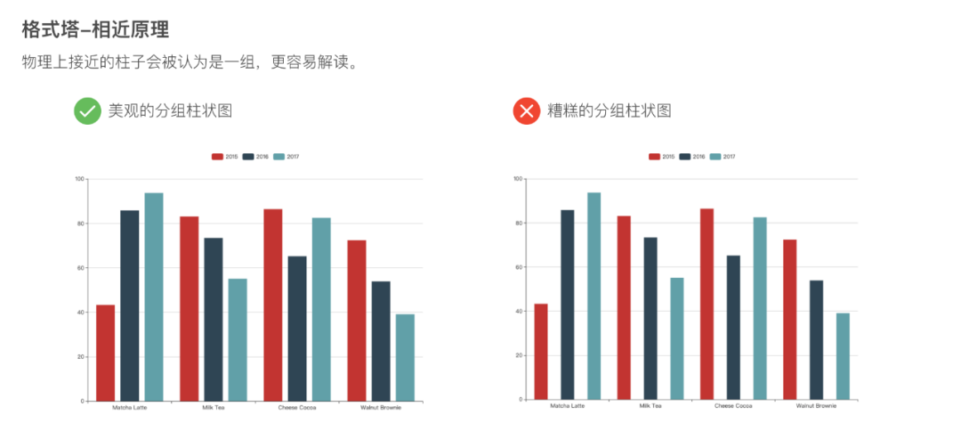 其次,我们可以利用格式塔原理精简或者优化我们的图表元素,减轻认知负荷。