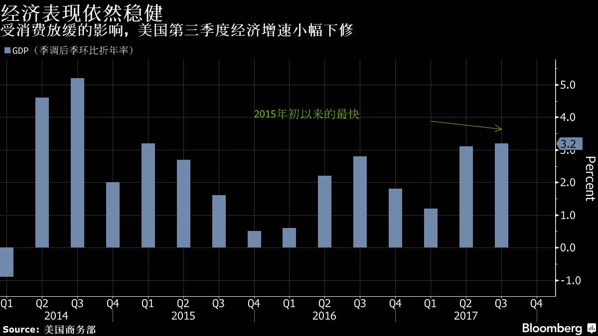 涵盖所有商品和服务表现的国内生产总值修正后依然显示,上一季度经济表现强劲。近期的报告显示,经济增长势头正得以延续。虽然准备递交美国总统特朗普签署的税改法案或在未来一年中提振经济,但经济学家们表示,特朗普所提出的全年3%的持续增长目标仍然是一大挑战。