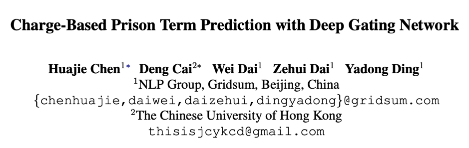 《Charge-BasedPrison Term Prediction with Deep Gating Network》)。
