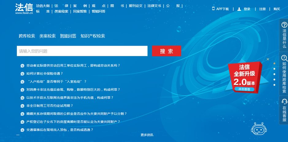 法信平台拥有以大规模知识图谱所存储的经过权威司法专家整理和积累的司法知识体系,把自然语言处理、意图分析、实体与关系识别、机器学习等人工智能技术融合在一起,在传统法律数据库关键词查找、知识检索和类案维度检索的方法之外,实现了交互式专业问答等功能,大大提高了中文法律知识服务的水准。