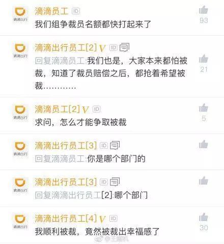 有趣的是,滴滴出行的裁员计划,由于赔偿到位,补偿丰厚。员工被裁出了“幸福感”,不少员工为了争夺裁员名额挤破了头。而滴滴并未对此事进行相关回应。滴滴出行因为处理得当,成为“良心”企业。
