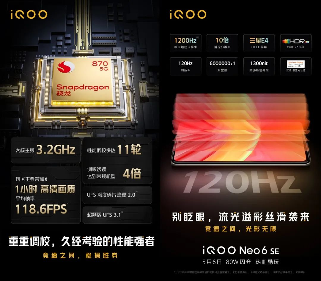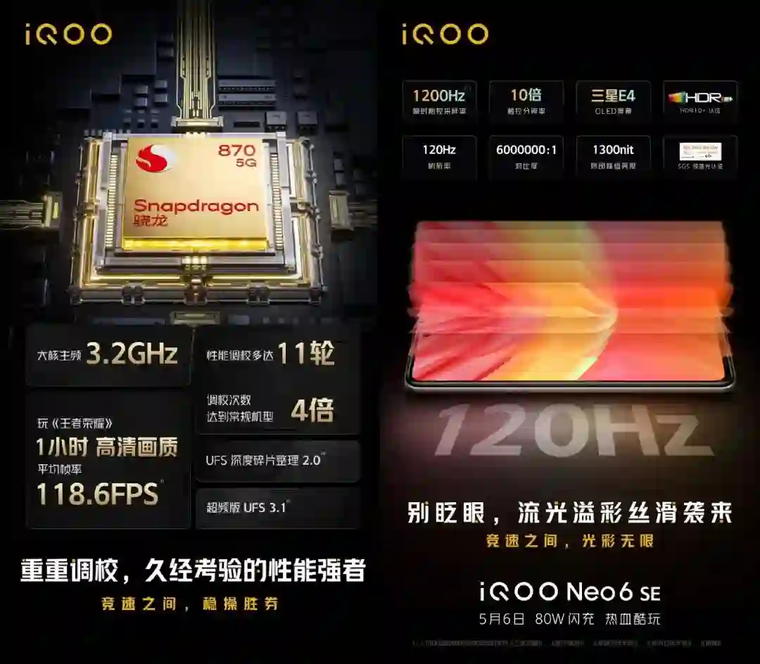 与已有的 iQOO Neo6 相比,SE 型号的主要变化是处理器从骁龙 8 换成了骁龙 870 处理器,有望进一步拉低售价,与 Redmi 竞争。骁龙 870 定位为中高端与次旗舰,发布一年有余依然无比坚挺。
